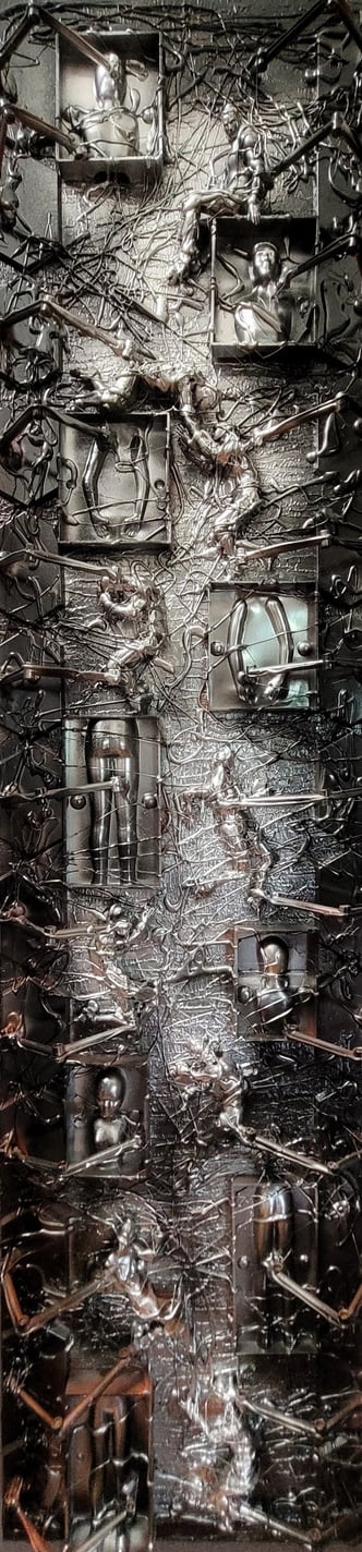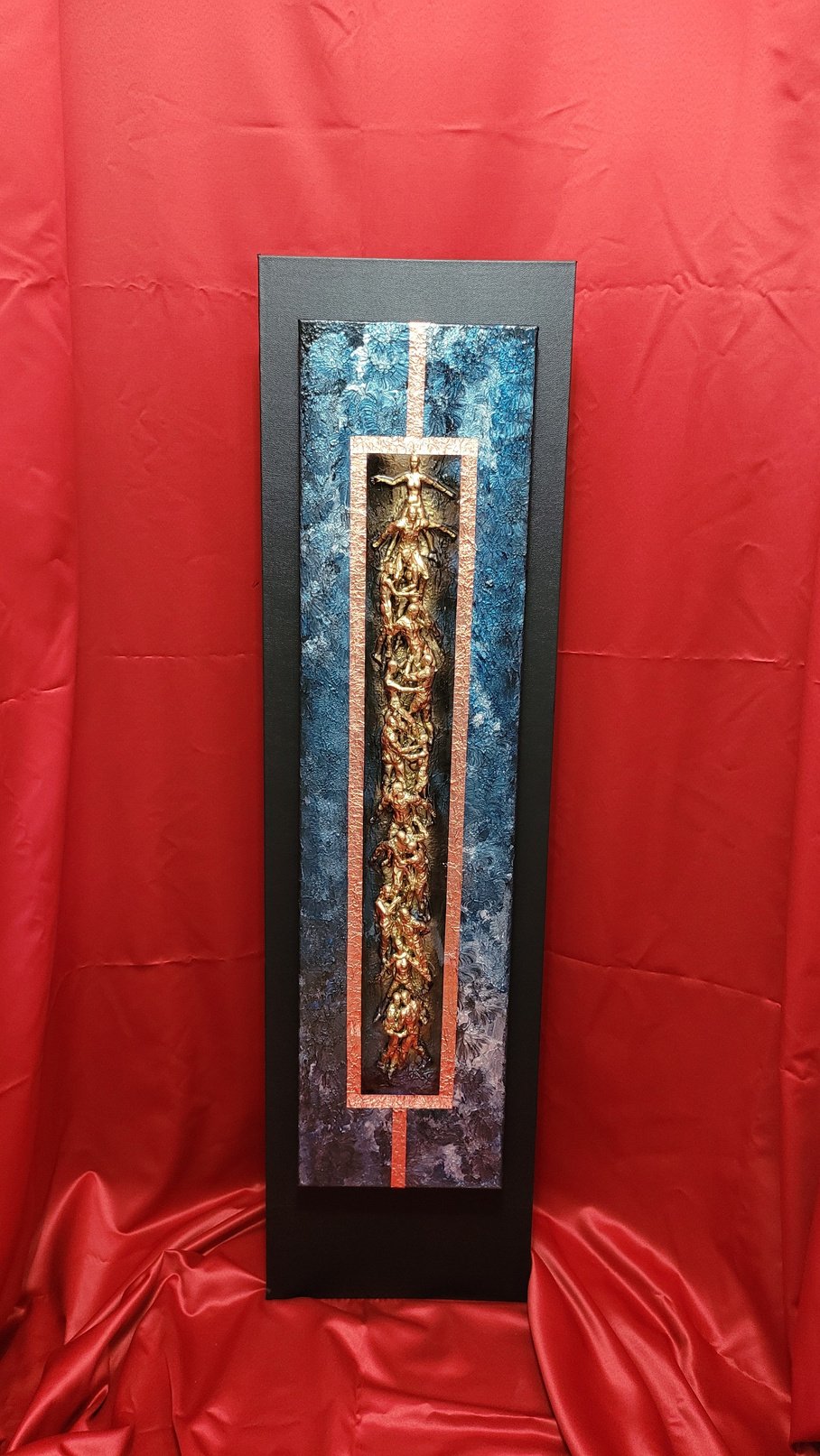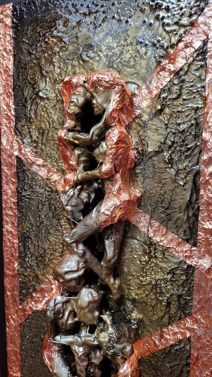 A mad genius or a brilliant madness, yet his vision is so uptodate: we have to pay homage to Einstein also with art. That’s way I have represented the bodies of men who fight with their bare hands: they don't have technological or sophisticated weapons due to their lust for power...