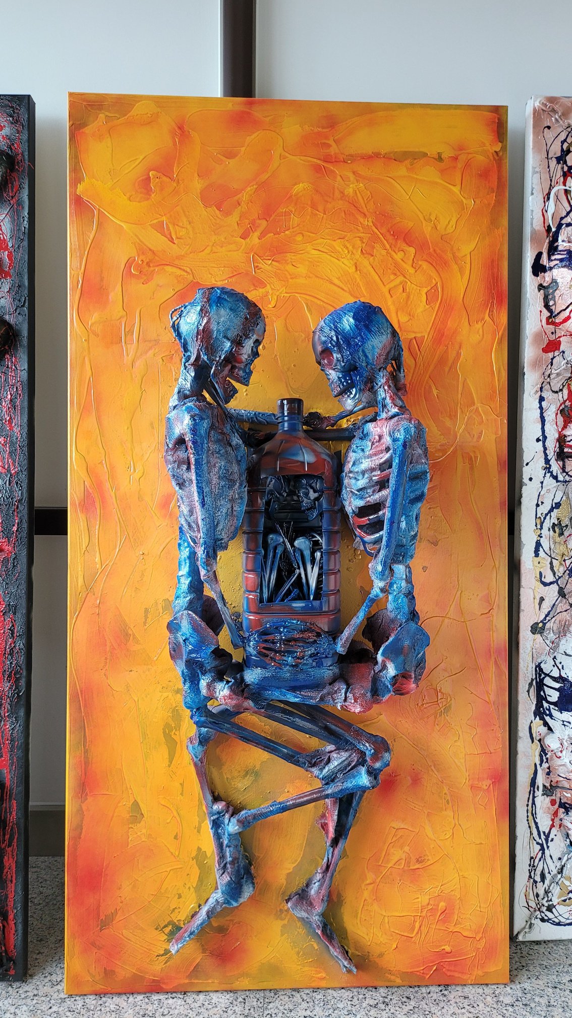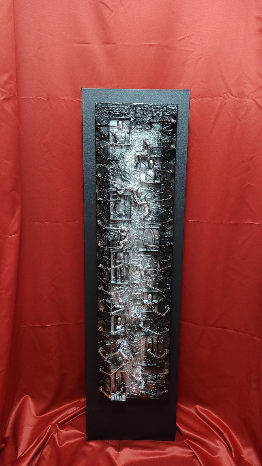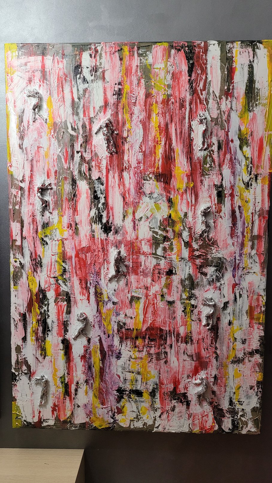 Andrea begins his journey in the art world many years ago as a portrait ​and cartoonist at a young age. After finishing his studies he perfects ​himself in different painting and sculptural techniques. He earns ​meanwhile as a satirical cartoonist, painter on glass and then moves on to ​different types of materials. He immediately prefers the canvas and then ​also approaches sculpture. In 2017, although reluctant, he was persuaded ​to enter the circuit of art galleries between Milan, Padua and Venice. He ​has gone as far as Palermo and he participated in several international art ​fairs: his works has been exhibited in Basel and Munich. In the same time ​he strenghtens his relationship with Milan art world. He has been included ​in several art catalogs and his name and his works has been appreciated ​for the raw truth that makes you think about life and for the strong visual ​impact. In 2023 he participated at QIAF, the Qatar international art fair. In ​his artworks he represents the daily life, anxieties, fears, joys, epochal ​events that mark our time, hoping to bring reflections on possible changes ​in the human soul towards constructive social relationships.