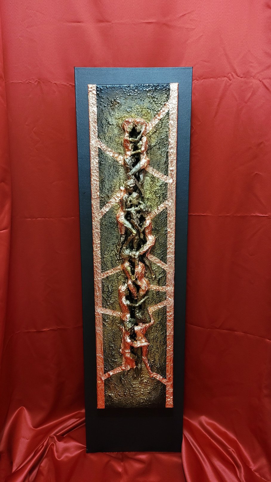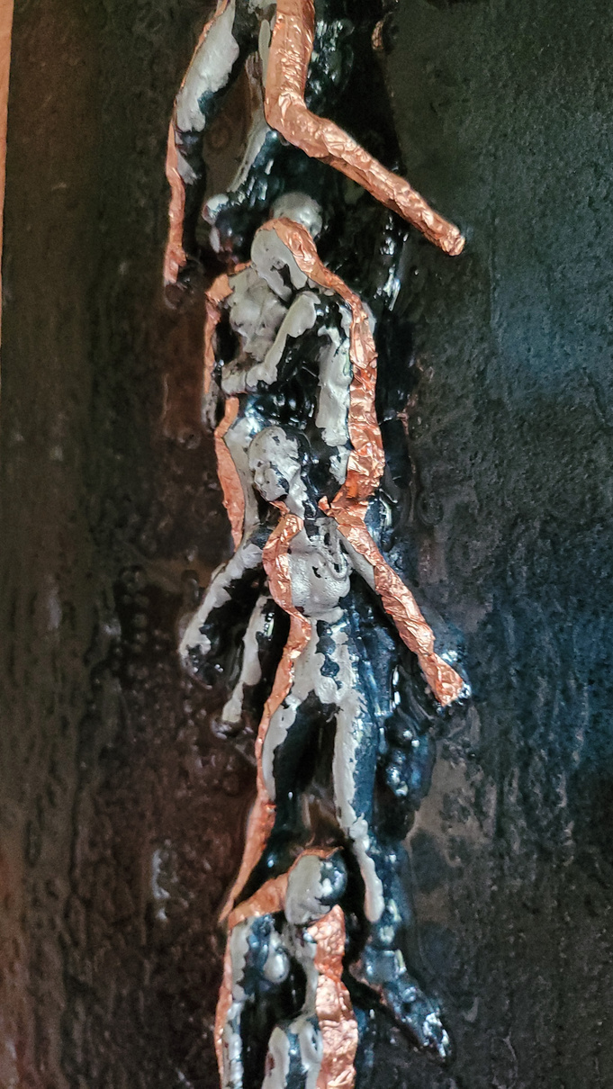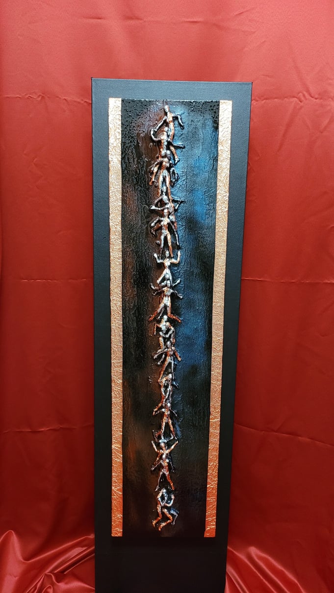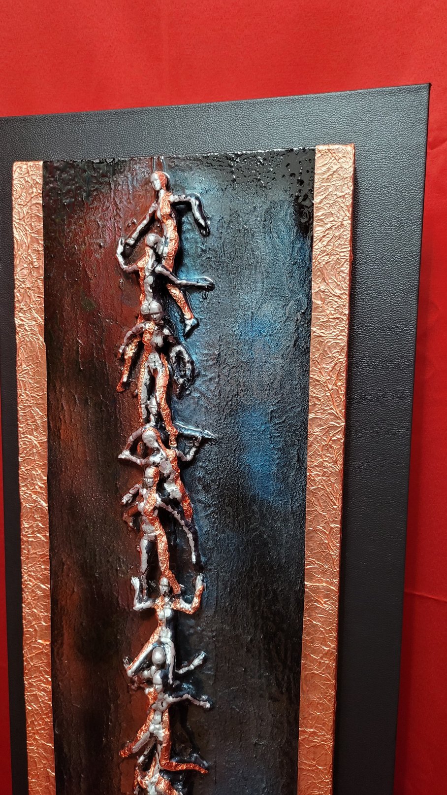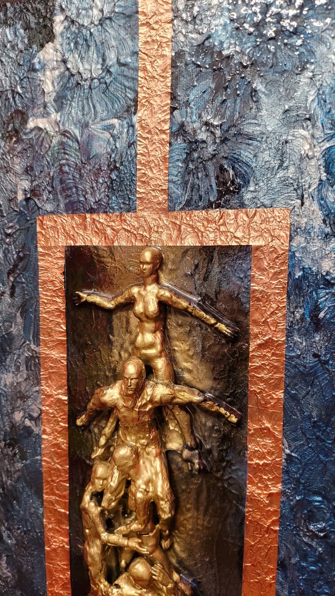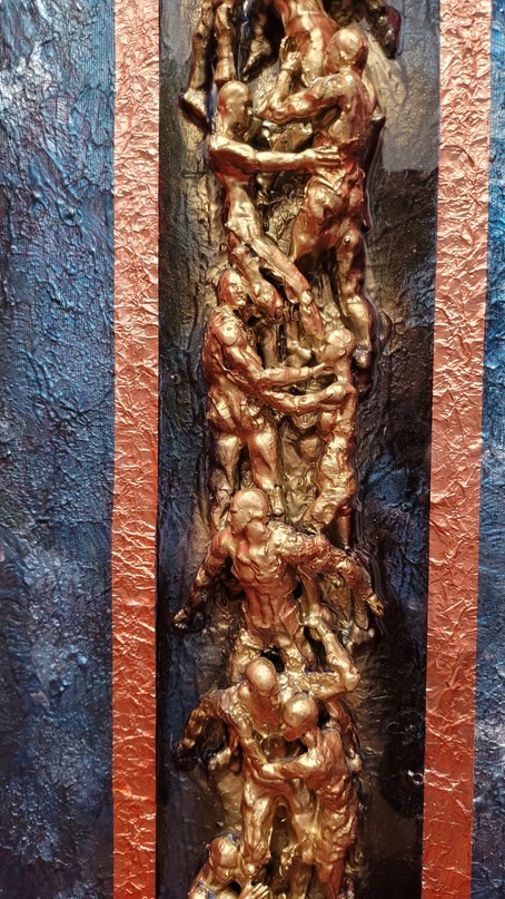 A mad genius or a brilliant madness, yet his vision is so uptodate: we have to pay homage to Einstein also with art. That’s way I have represented the bodies of men who fight with their bare hands: they don't have technological or sophisticated weapons due to their lust for power...